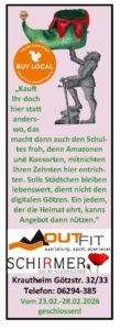 In diesem Jahr setzen wir ein Zeichen für Gemeinschaft und kulturelle Förderung:Schirmer Schuhe beteiligt sich an der Spendenaktion „Weihnachtlich Beflügelt“ und spendet 10 % des Umsatzes vom 1. bis 24. Dezember 2025 an die Jugendmusikschule Krautheim BEFLÜGELT. Damit stärken wir eine Institution, die seit vielen Jahren wichtige musikalische Bildungsarbeit in der Region leistet. Musikschule heißt